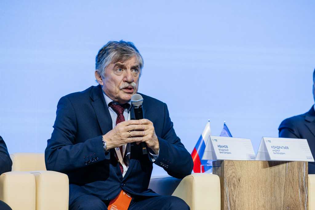 В рамках пленарного заседания академик Владимир Иванов рассказал о взаимодействии науки и промышленности, а Андрей Кондратьев заявил: «Нужно вкладывать в человеческий капитал. Без инженерных стартапов — нет движения вперёд».