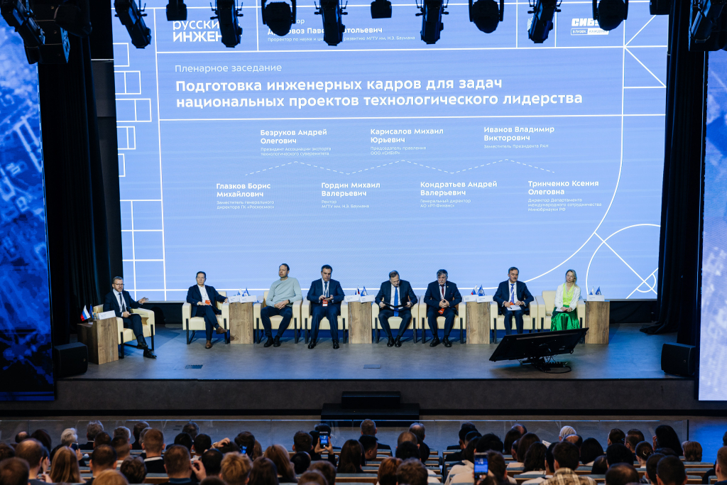 Центральным событием первого дня стало пленарное заседание «Подготовка инженерных кадров для задач национальных проектов технологического лидерства». В нём приняли участие представители органов власти, науки и бизнеса: ректор МГТУ Михаил Гордин, заместитель президента РАН Владимир Иванов, председатель правления компании СИБУР Михаил Карисалов, заместитель генерального директора ГК «Роскосмос» Борис Глазков, генеральный директор АО «РТ-Финанс» Андрей Кондратьев, президент Ассоциации экспорта технологического суверенитета Андрей Безруков, директор Департамента международного сотрудничества Минобрнауки РФ Ксения Тринченко и ректоры ведущих вузов.