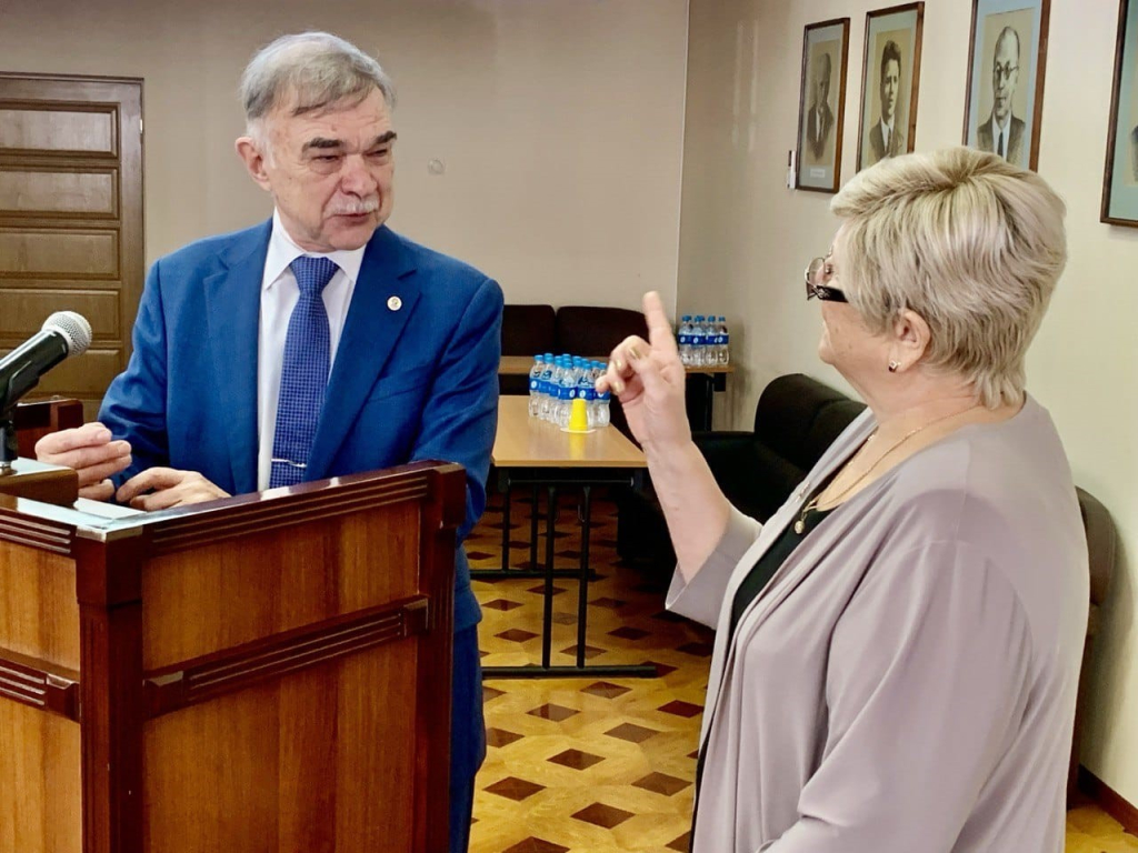 С презентацией книги «Академики, члены-корреспонденты и доктора наук академических учреждений российского (советского) Дальнего Востока» выступили академик РАН Виктор Ларин и доктор исторических наук Светлана Дударенок.