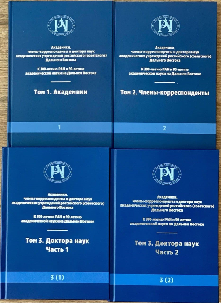 В справочном издании, подготовленном к 300-летию РАН и 55-летию ДВНЦ АН СССР, представлены биографии академиков, членов-корреспондентов и докторов наук системы академической науки в регионе с момента возникновения ДВФ АН СССР, содержится информация о наиболее значимых их достижениях, приведены факты из биографий выдающихся учёных, организаторов науки, внёсших заметный вклад в формирование нынешнего облика Дальневосточного отделения Российской академии наук.