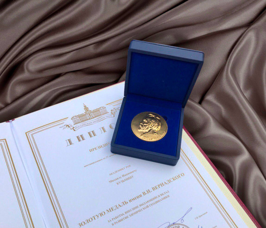 Золотая медаль имени Владимира Ивановича Вернадского присуждается за выдающиеся научные работы в области наук о Земле раз в пять лет. За время существования она присуждалась 16 раз. Первую медаль в 1965 году получил академик Александр Павлович Виноградов – его имя носит институт, в котором Михаил Кузьмин работает после окончания МГУ. В 1990 году медалью также был награжден Л. В. Таусон – первый директор ИГХ СО РАН.