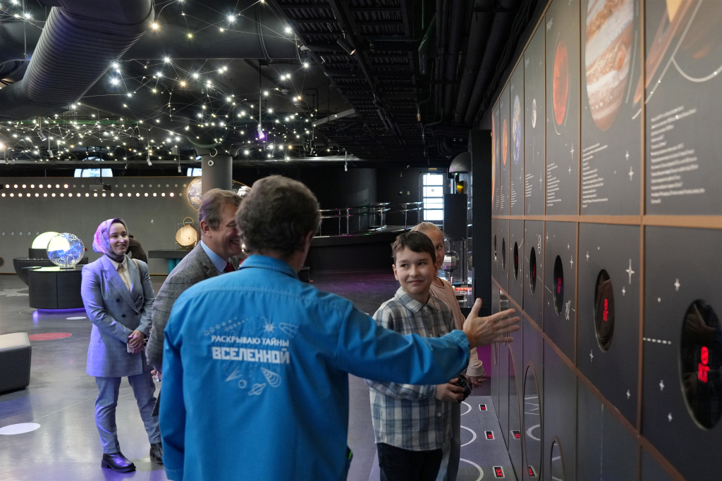 Андрей Наумов подчеркнул ценность живого, интерактивного знакомства детей с естественными науками в эпоху цифровизации и выразил надежду, что посещение планетария станет для школьников не только праздником, но и частью образовательного процесса. Он также вручил Денизу научно-популярный журнал РАН «Земля и Вселенная», который выпускается под редакцией академика Льва Зелёного — известного специалиста в области физики космической плазмы, физики солнечно-земных связей, нелинейной динамики и исследования планет.