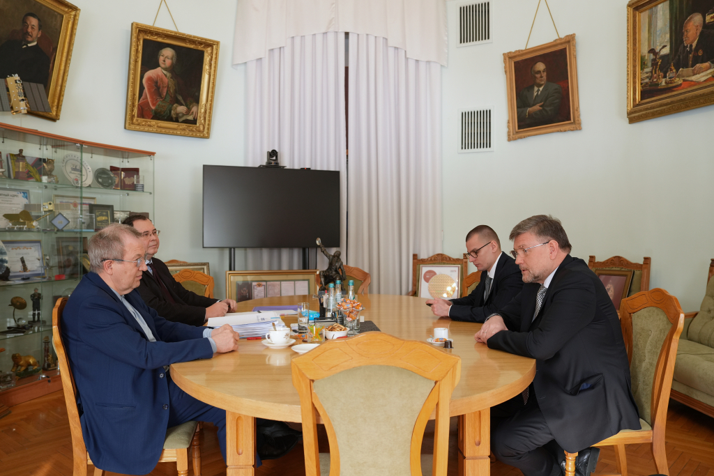 Президент РАН академик Геннадий Красников и руководитель Федеральной службы по гидрометеорологии и мониторингу окружающей среды Игорь Шумаков обсудили планы по развитию спутниковой группировки Росгидромета и математических моделей.