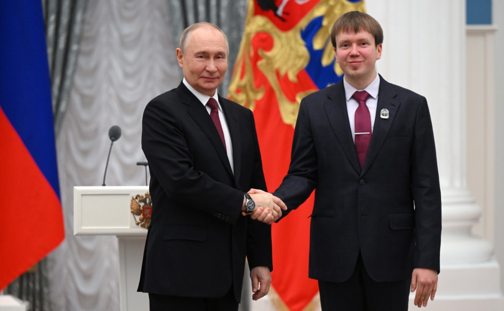 В преддверии Дня российской науки Президент России Владимир Путин вручил премии Президента в области науки и инноваций молодым учёным за 2025 год. Церемония прошла в Екатерининском зале Кремля.