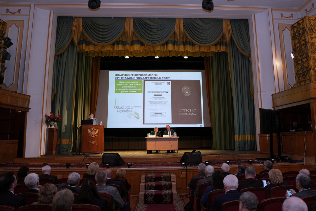 Руководитель Департамента аттестации научных и научно-педагогических работников Минобрнауки России Михаил Козлов доложил о переходе на реестровую модель оказания государственных услуг. С 1 марта 2026 года введены реестры аттестатов, сведений о признании иностранных учёных степеней и диссертационных советов. «Теперь за Минобрнауки закреплено введение реестра аттестатов. Мы сократили общее время предоставления услуги. Те, кто получал учёное звание доцента или профессора, знает, с какими временными издержками это было сопряжено. Сейчас практически сократили до 20 с небольшим дней», — заявил он.
